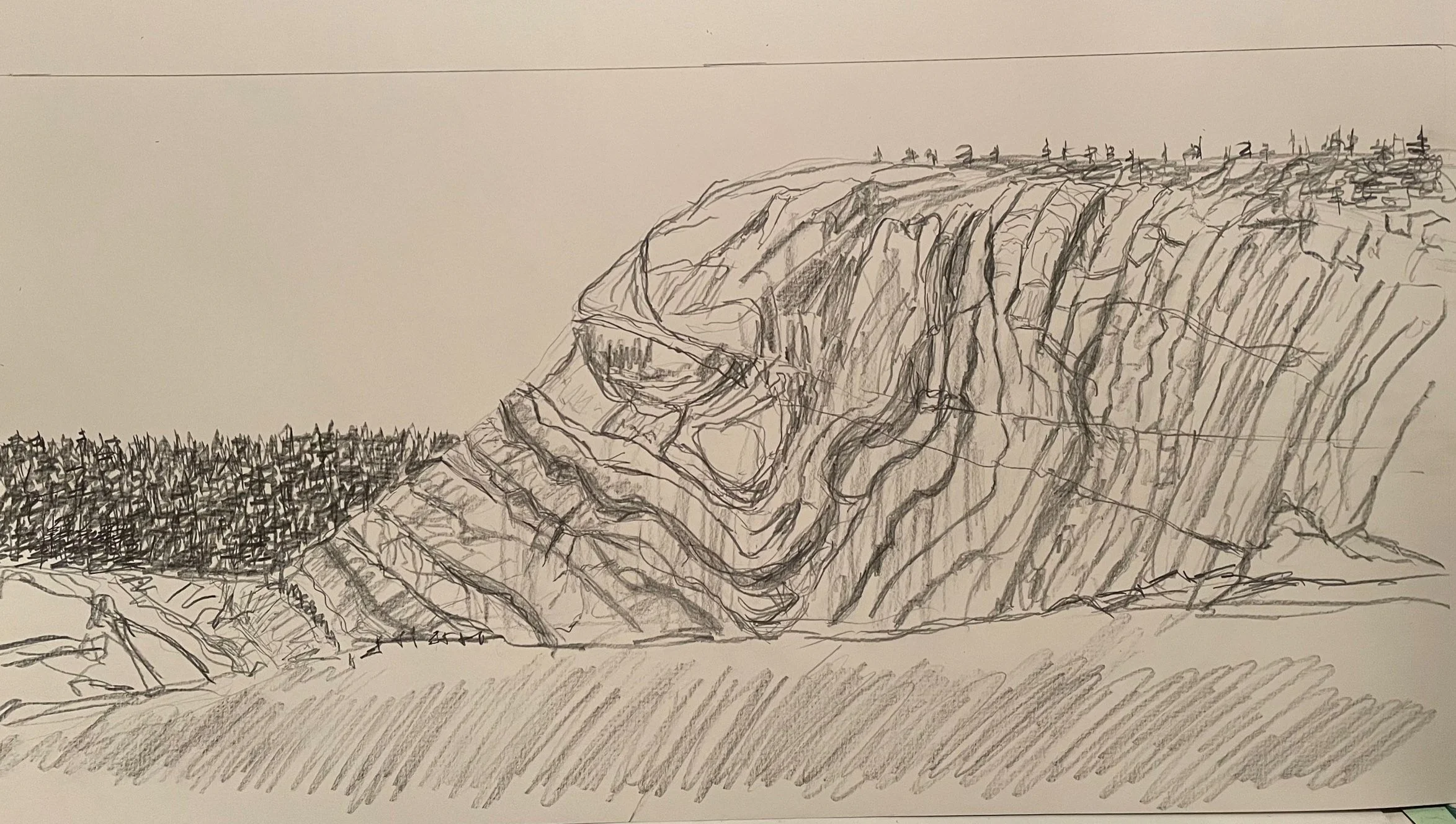 Sketch of the Humber Valley syncline, graphite on paper, 14 x 22 inches